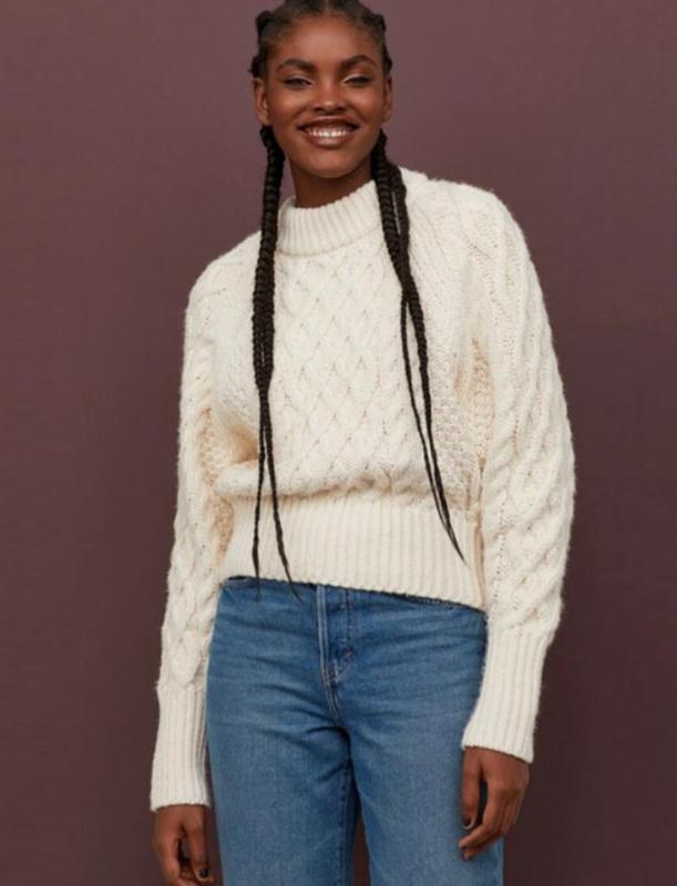 Свитер вязки косами из мягкой пряжи с добавлением шерсти. Ворот стойка, связанный резинкой, а также широкие рукава реглан с отворачивающейся резинкой на манжетах. Полиэстер в составе джемпера - переработанный. Размер - S-XS Материал - Акрил/Шерсть Цвет - Белый/Молочный Принт - Однотонный Страна-производитель товара - Камбоджа Вязка - С узором Фасон рукава - Широкие рукава Состав - 50% полиэстер, 45% акрил, 5% шерсть Страна регистрации бренда - Швеция