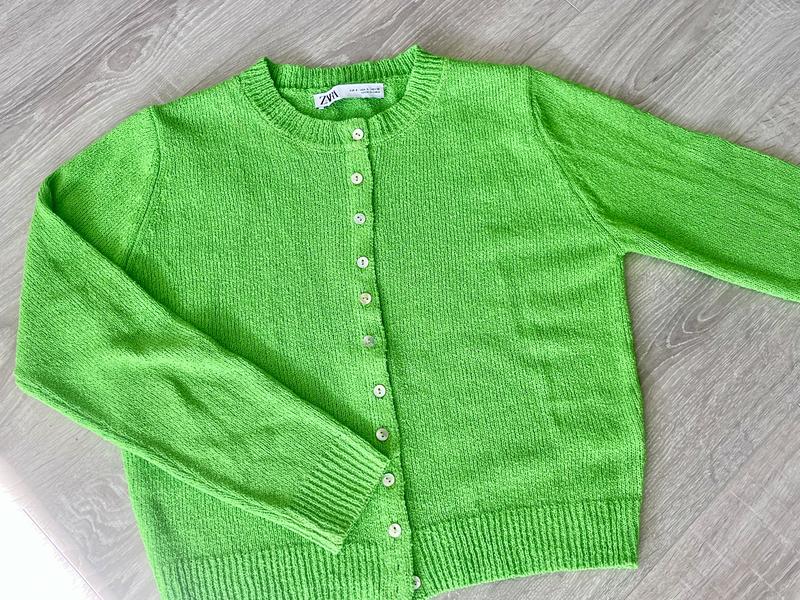 Светрик Zara, тонкий, яскраво-травʼяного кольору. Розмір s. Стан ідеальний, одягнений 2 рази.