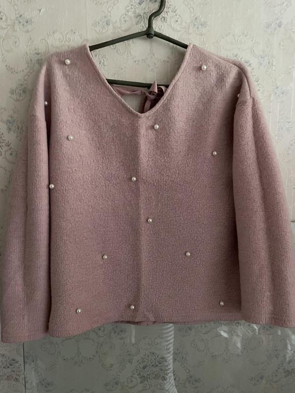 Жіночий светр з перлинками, а взаді бантик . Дуже ніжний і жіночний . Приємний до тіла . Без нюансів
