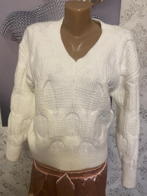 Красива кофточка. Объемная вязка. Очень красиво садится на тело. Подходит под дорогую одежду: брюки, юбочка, джинсы. Приятная к телу. На размер М..