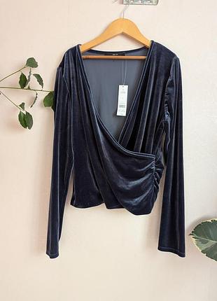 Бархатный свитер на запах. Очень красивый цвет. Длина от верха плеча 55 см. Рукав 62 см. Грудь 54 см. Новый.