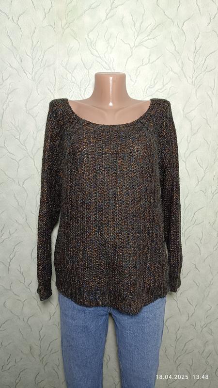 Размер XL по набору. Крупная вязка. грудь 54 см, рукав от горловины 61 см, длина 57 см. склад нитки на фото состояние новой вещи.