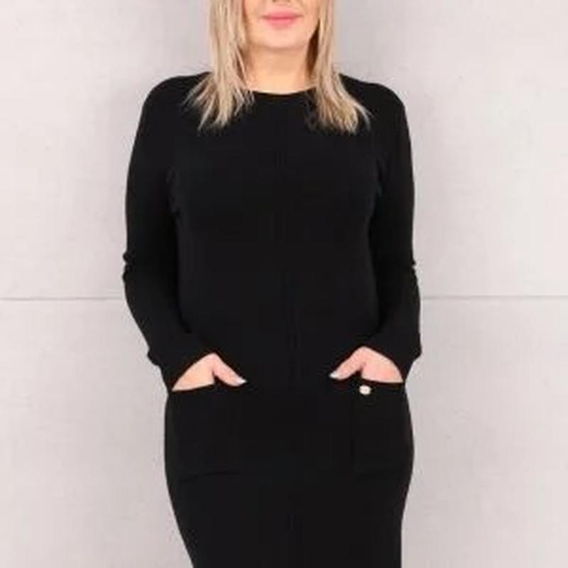 Подовжений вʼязаний светр-туніка Чорний базовий, з переду по бокам кармани Добре тягнеться, розмір вказаний С, на М також підійде Стан гарний, без дефектів Без бірок