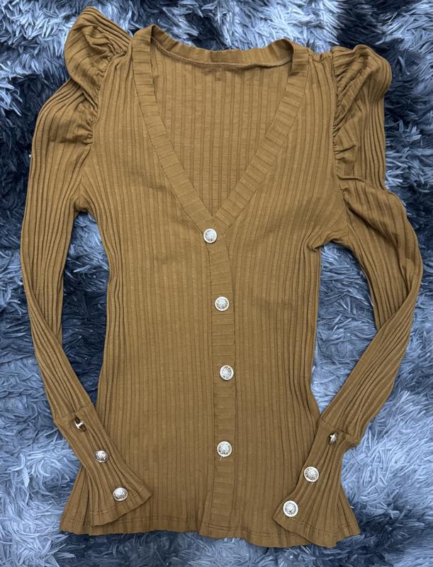 Красива базова кофтинка в рубчик з гарними ґудзиками, розмір С-М, гарно тягнеться Стан чудовий, красива лінія плеча Колір гірчичний 😍