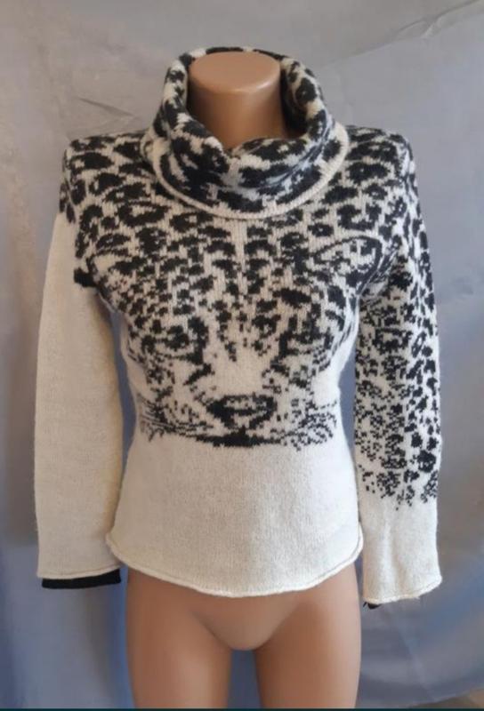 Теплый свитер Alpa. Двойной. Нижний-черный. Верхний-белый с черным рисунком. Розм.36/S/44 Состав: 52% шерсть, 33% полиамид, 15% мохер. Длина-53 см Полуширина низа - 43 см ПОТ-37 см ПОГ-43 см Плечи-38 см Рукав от проймы-45 см, от плеча-58 см Идеальное состояние.