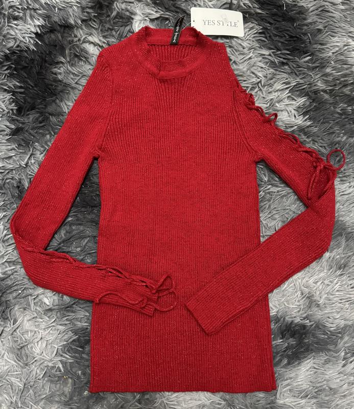 Новий турецький оригінальний светрик в рубчик Дуже мʼякий та приємний до тіла, з люрексовою ниткою, має гарний відблиск Розмір 42-46 універсальний, гарно тягнеться З одним відкритим плечиком на шнурівці та рукавом теж на шнурівці Красивий насичений колір Гарний в житті Всі бірки на фото
