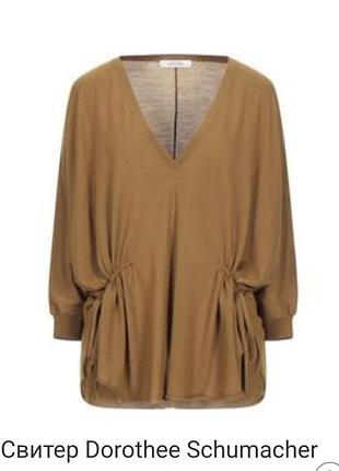 Свитер Dorothee Schumacher из премиальной мериносовой шерсти Размер 2 (немецкий 42) | Оверсайз-силуэт Потрясающая находка для тех, кто ценит дизайнерскую эстетику, комфорт и благородство тканей. Этот свитер от Dorothee Schumacher — воплощение современной элегантности в самом тёплом и мягком исполнении. Выполнен из 97% первоклассной стриженой мериносовой шерсти с добавлением полиамида и эластана — он буквально струится по телу, обволакивая фигуру лёгкой текстурной волной. Материал дышащий, приятный к телу и невероятно пластичный. Свободный оверсайз-крой с рукавом-реглан подчёркивает расслабленную утончённость. Эта модель одинаково красиво сидит как на стройной девушке (создавая модный объём и подчёркивая хрупкость силуэта), так и на женщине с формами — ткань красиво ложится и ниспадает, не утяжеляя образ. Ключевая особенность — боковые кулиски, которые можно утягивать или отпускать: в затянутом виде создают эффектные драпировки и акцентируют талию, в распущенном — дарят образу расслабленную геометрию и максимум свободы. Глубокий V-образный вырез визуально вытягивает шею и делает образ особенно женственным. Цвет — насыщенный горчичный с карамельным подтоном: тёплый, благородный, подчёркивающий цвет кожи и прекрасно сочетающийся с нейтральными оттенками, джинсами, белыми брюками или мягким трикотажем. Свитер новый, без бумажных бирок, — без следов носки, катышков или деформаций. Все внутренние бирки сохранены. 🌿 Бренд: Dorothee Schumacher 📏 Размер по бирке: 2 (идеально подойдёт на 44–46, комфортно на 48) 🧵 Состав: 97% virgin wool, 2% полиамид, 1% эластан Этот свитер — не просто базовая вещь. Это инвестиция в стиль и уют, которую вы не захотите снимать. Размер : длина 70 см, ширина - (очень тяжело померить, так как идёт рука в реглан), но примерно полуобхват груди 80 см, полуобхват талии 80 см , но затягивается на нужный Вам объем. Длина рукава от горловины к низу 65 см.