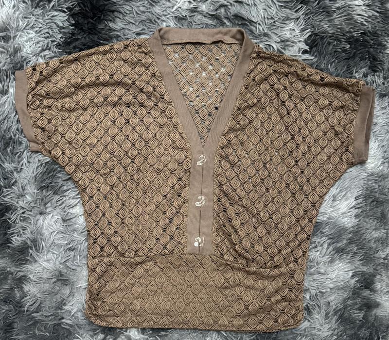 Новий мереживний кардиган Розмір універсальний, 42-46 Купила в Турції дорого, але так і не носила Є дефект з переду, були приклеєні деревʼяні 3 ґудзика, але і чемодані поклала кофту разом з бутилкою і вони розтрощились, треба буде щось приклеїти або віддерти клей, в ціні врахувала Продаю бо не ношу Всі бірки на фото, в житті справді виглядає стильно