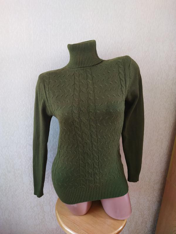 Мягкий гольф в косы теплого цвета хаки. Длина от плеча 59 см, Пог 41+ см, низ 35+ см, плечи 34 см, рукав 55 см