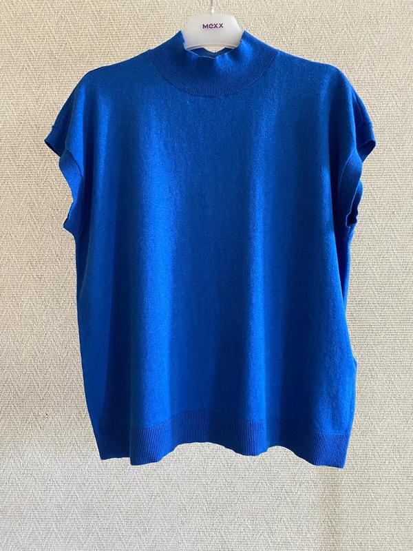 Базовый топ из премиального микса хлопка и кашемира – мягкий, комфортный и теплый. Модель с высоким горлом, без рукавов - идеальный вариант для многослойных образов, под жакеты, кардиганы или самостоятельно в межсезонье. 🔹 Размер: указанный M, подойдет также на S 🔹 Цвет: насыщенный голубой 🔹 Склад: 80% cotton 20% cashmere 🔹 Фасон: свободный крой, без рукавов, высокий воротник 🔹 Состояние: очень хорошее, без дефектов и следов ношения 🔹 Бирка состава на фото 📦 Отправка в день заказа 📏 Заміри: Плечи спущенные 56 см, ПОГ 54,5 см, длина 59 см, низ 52 см 💡 Идеальная база для осени и зимы. Хорошо комбинируется с пиджаками, юбками, джинсами, а также для офисных образов или выходов в город.
