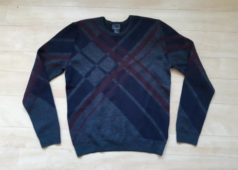 Джемпер светр h&m. Розм.38/М/46. Состав: 100% шерсть мериноса. Серый с синими и бордовыми полосами. Длина - 54 см. Длина рукава от проймы - 43 см. ПОГ- 44 см. Плечи - 37 см.
