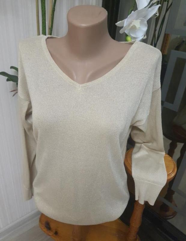 Кофта свитер Chicoree размер L ( носила оверсайз на размер М).Стан идеально одевалась пару раз.Не скатывается.Колир, как на двух последних фото,камера ослепляет.Очень красиво и нарядно смотрится.Ткань с 10% люрекса.Мянькая, приглянувшаяся к тела.Замеры: длина-62см,ПОГ-49см,ПОТ-46.5см,плечи приспущенные-48см,рукав от шва-50см.