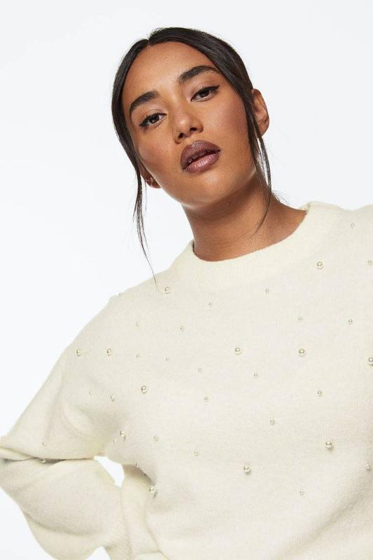 Молочный свитер с жемчужинами h&m