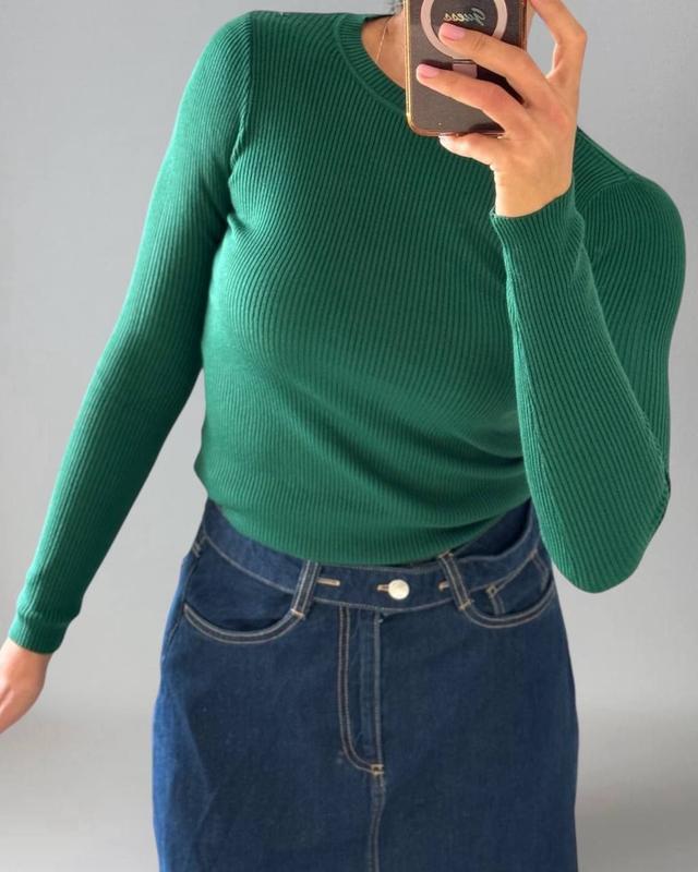 Базовый однотонный трикотажный свитер люксового качества Модель: 167 Состав: трикотаж рубчик (65% cotton, 35% polyester) Размер: универсальный (42-46) Длина изделия 56 см Длина рукава 61 см Ширина под подмышками 33 см (тянется на ОГ до 100 см)