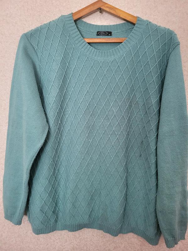 Женский вязаный свитер Bm По бирке хл П- во Индия, Пэ и акрил в составе Есть мелкие катышки Пог 62 тянется до 72 Длина 67 рукав 62 см