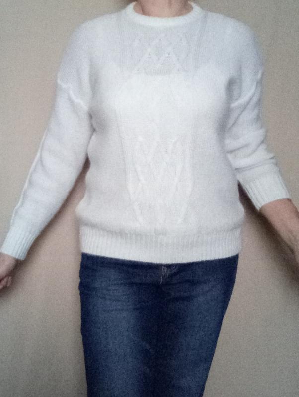 Очень симпатичный свитерик, узор спереди с сзади. Состояние новой вещи. На фото модель -48 украинский. Мерки: ПОГ 50 см, длина 60 см, спущенное плечо, длина рукава от горловины 68 см. 87 ознакомиться с условиями продажи в разделе "про меня" https://shafa.ua/member/nady2/about