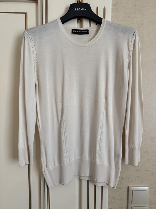 Оригінал,стан ідеальний.Одягалася лише раз.Розмір 44 італійський,ідеально на М,можна і С.Тканина шовк з котоном.Дуже легка і зручна.Заміри:в грудях-46см,довжина рукава-49см(він чуть укорочений 3/4),довжина-61см.Колір молочний