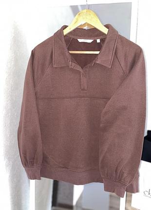 Светр на флісі, колір коричневий, светр з коміром-поло має довгі рукави з манжетами на резинці та широку резинку по низу. Розмір S Тканина 60% Котон, 40% Поліестр