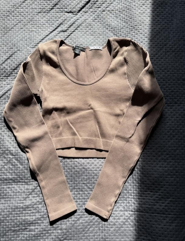 Коротка міні кофтинка, тоненька в рубрик, коричневого кольору, xs/s