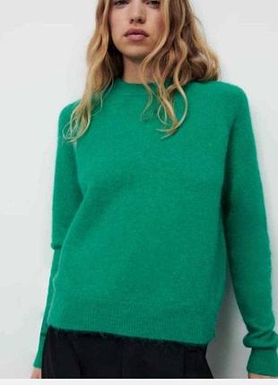 зелений светр розмір м, але краще підійде на S 44% nylon · 19% wool · 18% alpaca · 14% acrylic · 5% elastane.