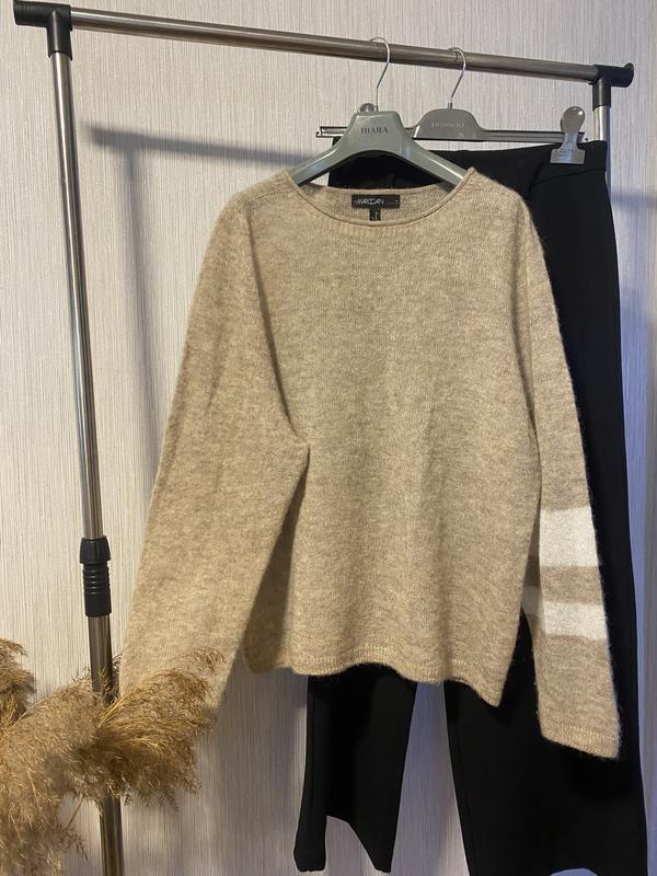 Стильний і надзвичайно комфортний светр від преміального бренду Marc Cain, виконаний у трендовому бежевому відтінку. М’яка, приємна на дотик тканина створює відчуття затишку. Лаконічний крій із легким оверсайз-силуетом чудово підходить для поєднання з джинсами, класичними брюками чи спідницями. Особливу родзинку додає контрастна біло-сіра смужка на рукаві, яка виглядає стильно та ненав’язливо.