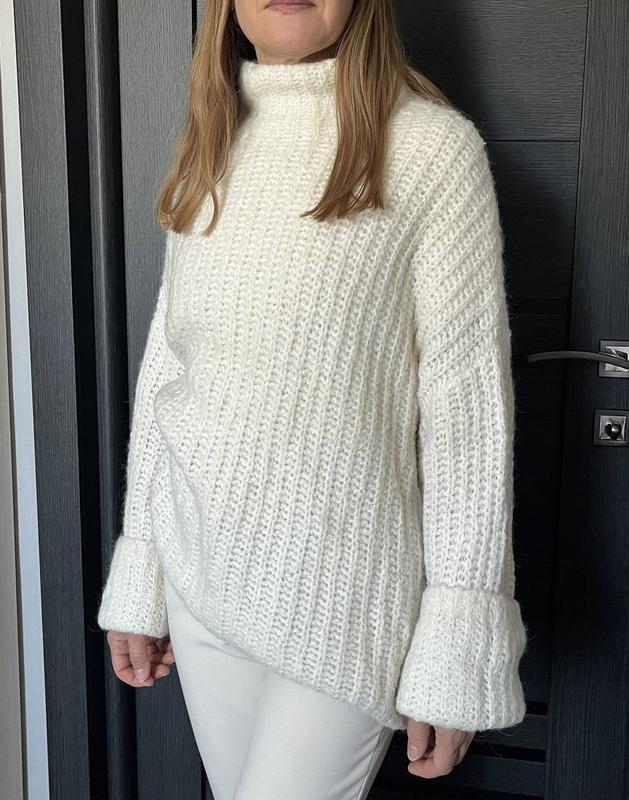 Светр від бренду Samsoe Samsoe ,светри цього бренду йдуть від 140 євро Склад шерсть Лами та Альпаки ,дуже теплий Розмір М ,але йде оверсайз тому підійде на S також (на фото вдягнен на xs) Тепла в’язка з високим коміром-трубою, злегка вільний крій і натуральний кремово-білий колір Стан ідеальний без дефектів