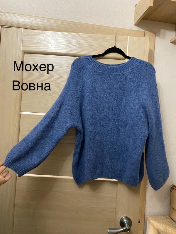 Розмір підійде на L , Xl, M, в залежності від того, скільки обʼєму хочеться, гарний не яскравий блакитний колір , склад 40% мохер, 10% вовна , довгі обʼємні рукава , тягнеться , має пухнасту текстуру , стан без ньюансів Ног 58см Нот 54см Ширина по низу 50см Довжина рукава 50см Довжина по спинці 60см