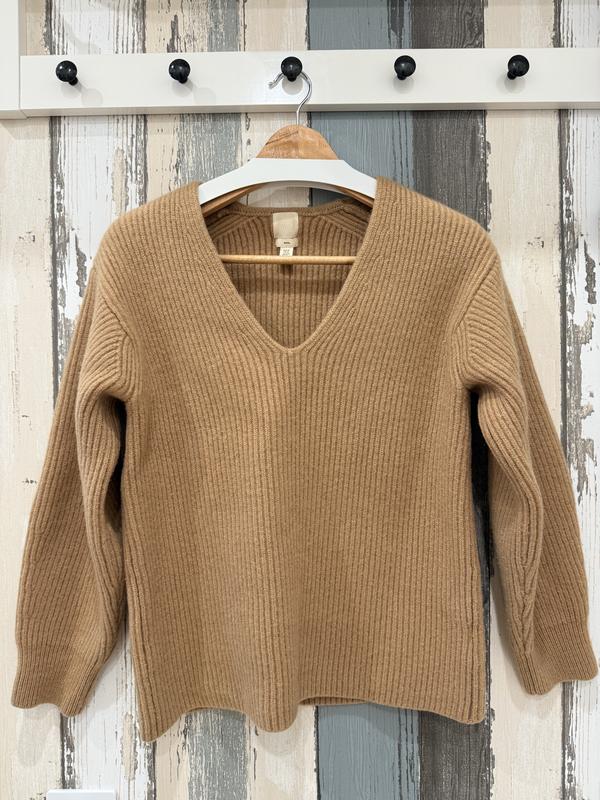 Вовняний светр дуже гарного кольору, важка тканина Напівобхват грудей: 47 см Напівобхват талії: 45 см Довжина рукава: 65 см Довжина светра: 61 см