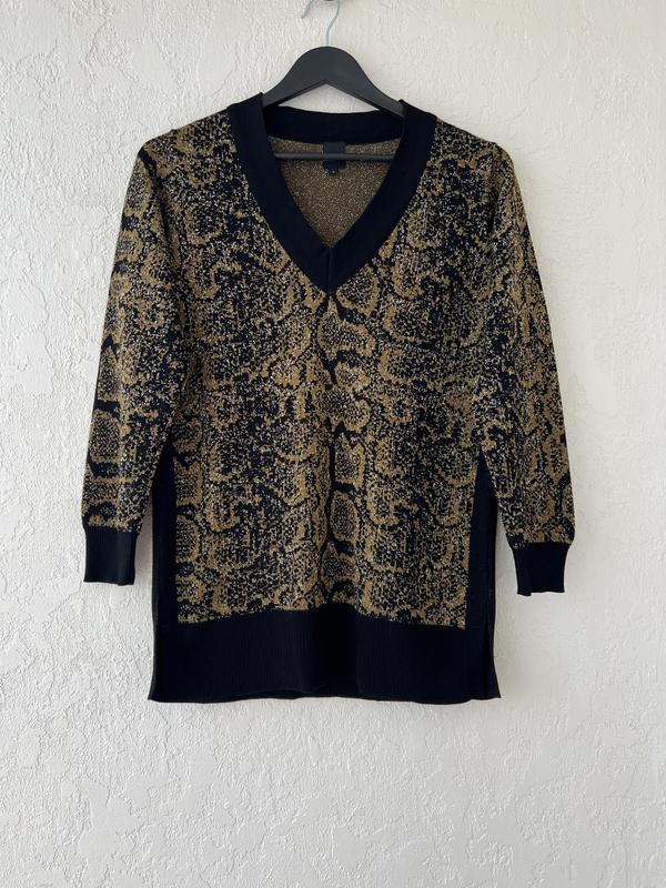 Код: 840 Жіночий светр, фірми River Island, розмір Uk 8, Eur 34, підійде на наш 44 розмір. Тканина 64% віскоза, 15% акрилік, 8% поліамід, 7% металічна нитка. Довжина 70 см, в плечах 39 см, довжина рукава 54,5 см, в грудях 49 см. Б/у стан ідеальний Ціна: 320 грн