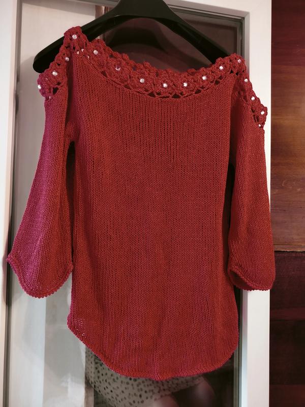 кофточка вязаная, с камушками, размер 48-50, материал коттон. если берете несколько вещей, будет скидка.