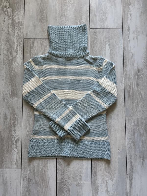Теплий в’язаний светри з горловиною у блакитно-молочну полоску. Підійде на S-M (оверсайз на менші розміри). ‼️АКЦІЯ‼️1+1=3,1+2=5, 2+2=6! *дешевша одиниця у подарунок! Дотаткову інформацію запитуйте. Умови оплати: - Повна передоплата, - ПІСЛЯПЛАТИ НЕМАЄ! - Безпечна оплата можлива. Перед оформленням замовлення уточнюйте наявність, а також можливість оформлення безпечної оплати саме на обраний товар.