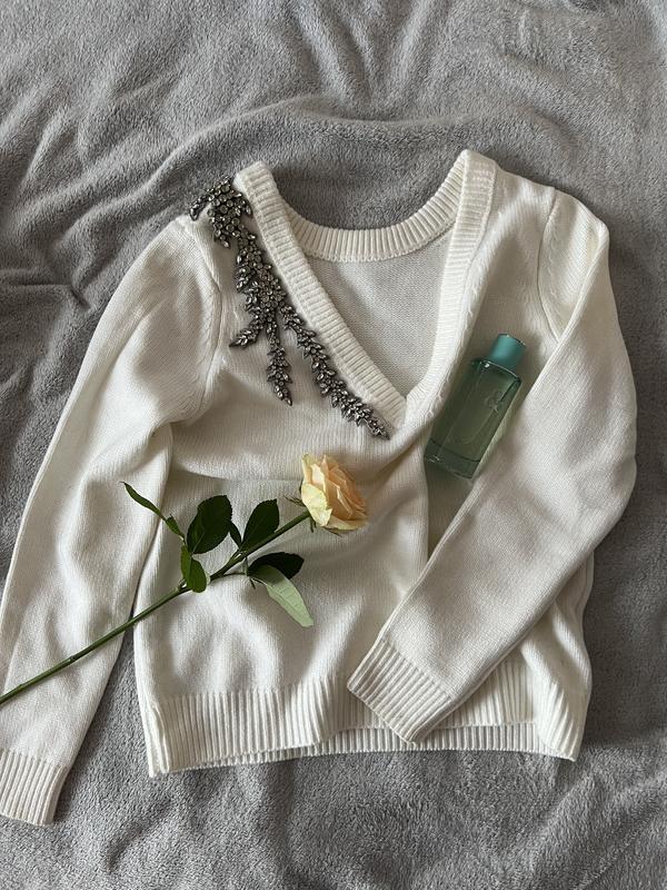 Светр жіночий білий з дорогоцінними каменями ✨