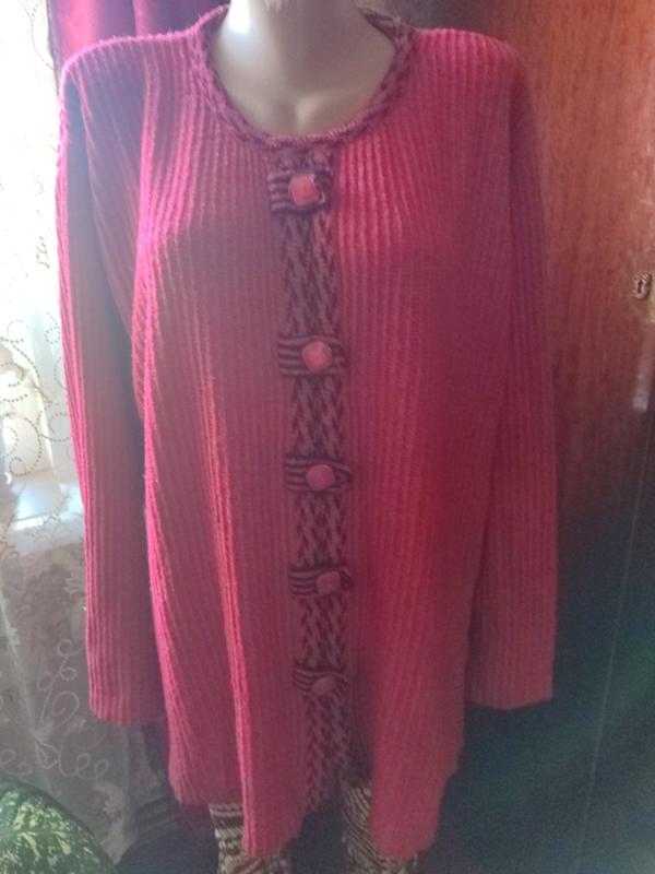 Стан очень хорош, ткань буклированная, на фото загорает камера,цвет темнее, вишневый.По бокам есть разрезы.Спереди планка с пуговицами, снизу разрез.Пог-70см,пот-70см, длина рукава от плеча -60см, длина изделия -75см.Подписьтесь на обновление, почти каждый день.Есть еще много чего интересного.
