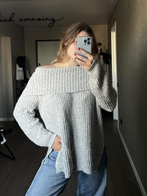 Тренд осенни 2025, свитер с открытыми плечами, можно носить широкой горловиной, хорошее состояние, не колется на хс-с