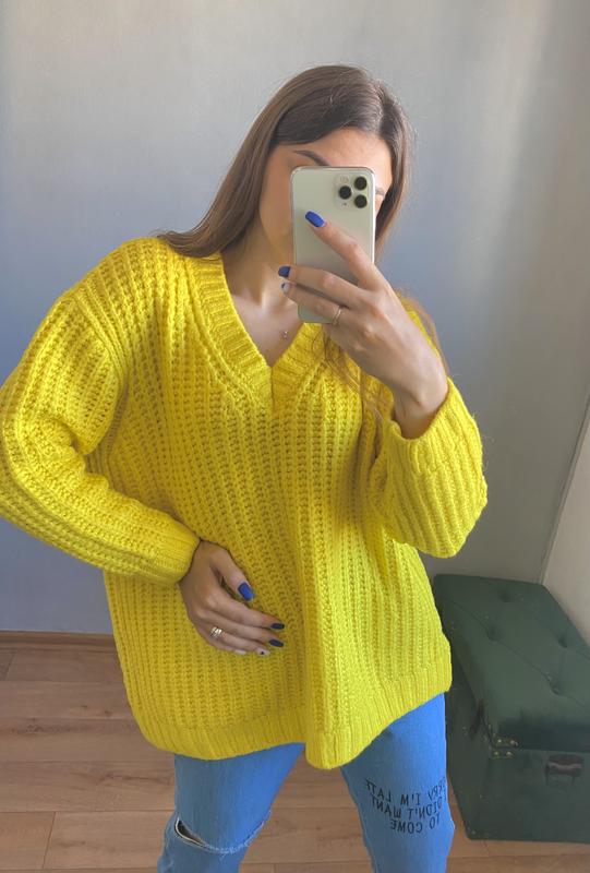 Светрик mango, жовтого кольору, велика вʼязка, теплий Стан: ідеальний Розмір: S Груди: 61 Талiя: 60 Довжина рукава: 64( від горловини) Довжина: 58