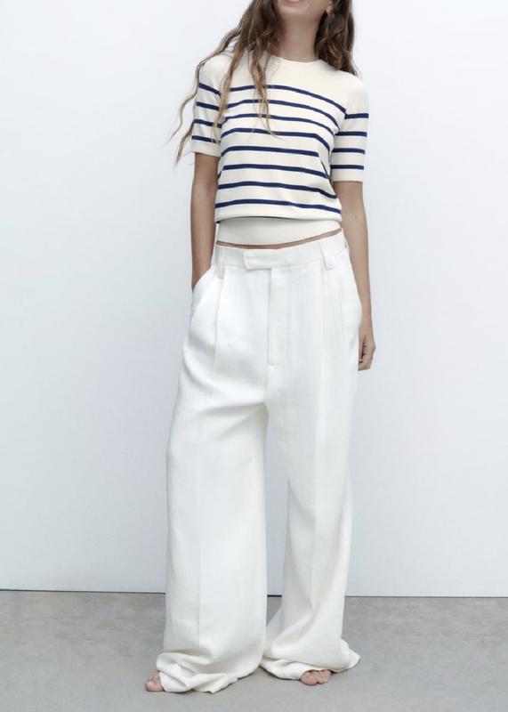 🌿базовая кофточка в полоску от Zara с манжетами, красиво тянется Размер:М Замеры:ПОГ 46 см, длина 56 см