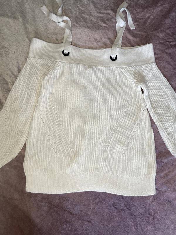 Светр з відкритими плечима Розмір в наявності XS S M L Колір білий Заміри XS Пог 37 см Рукав 51 см Довжина 48 см Плечі 44,5 см Заміри L Рукав 55 см Пог.50 см Довжина 52 см М Рукав 52 см Пог.45 см Довжина 49,5 см