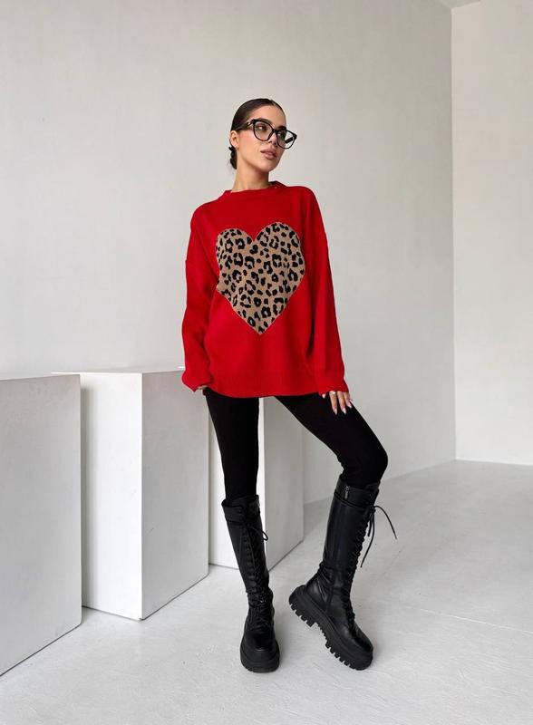 🤍 Свитер Oversize с сердечком 🤍 Модель 1008 ▪️Производство: Турция ▪️Вязка - 50% коттон, 50% акрил ▪️м’який, не колеться 💯 Отличное качество и комфорт на каждый день 🎨 Кольори: ▫️ Молоко ▫️ Бургунди ▫️ Красный 🏷️Размер: Oversize ▫️ Ширина по ОГ: 63 см ▫️ Длина: 64-65 см ▫️ Длина рукава от горловины: 70 см