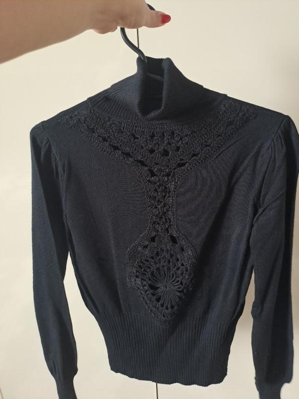 Гольф черного цвета с вязаным узором на спине Приятный к телу Размер S/M Плечи 35см ПОГ 40см ПОТ 33см Рукав 57см Длина 51см