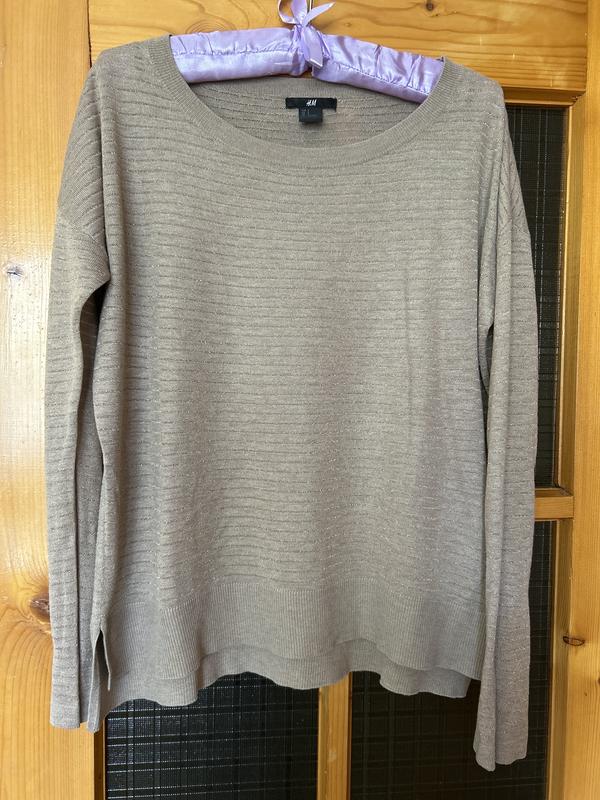 Легкий светр кофта H&M, розмір S, підійде і на М. Має золоту люрексову нитку. Спинка трохи подовжена. Додаткові фото та заміри- за запитом.