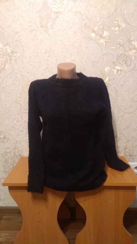 Пушистый тёплый свитер в отличном состоянии .в своём составе содержит шерсть. мягкий тёплый .длина 62 см,ширина в груди 43 см,рукав от горловины 63 см, материал тянется, постирано