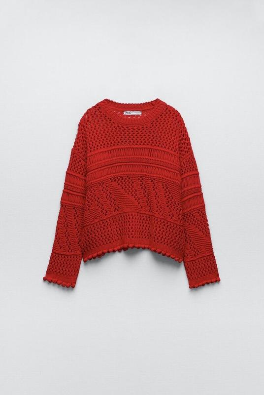Стильний светрик Zara, розмір S, за рахунок фасону можна М. Стан ідеальний. Довжина 53 см. Обʼєм грудей напівобхват 51 см( тягнеться до 65 см). Довжина рукава від комірця 72 см.