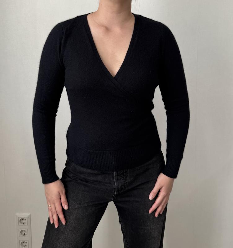 Светр чорного кольору На розмір Л-ХЛ У складі 40% ангора, 6% вовна, 54% нійлон Довжина 53 см, напівобхват грудей 51 см, довжина рукава 61 см Стан ідеальний Вдягнуто на розмір Л, зріст 167