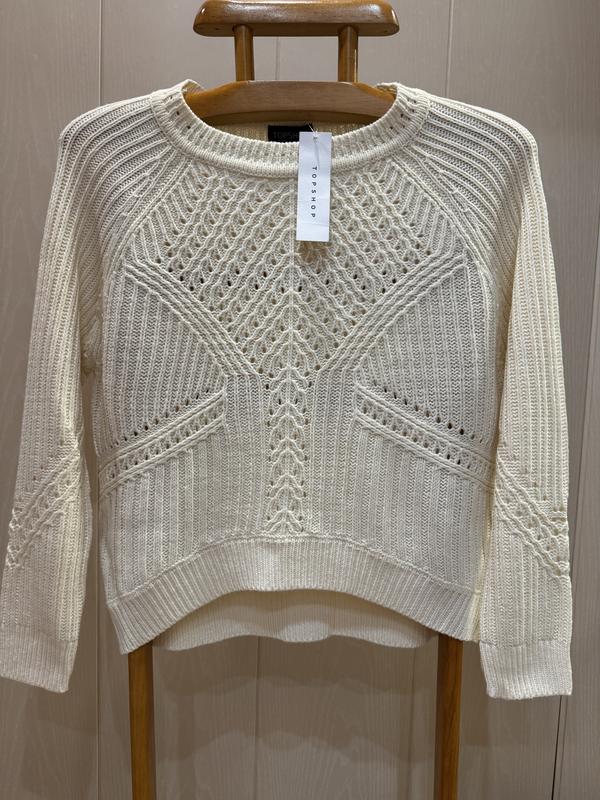 У наявності гарний светр оверсайз фірми TOPSHOP. Розмір вказаний 6/34, але через вільний крій чудово сяде й на 8. Склад: 100% акрил... Нитка м'яка та приємна до тіла, добре тягнеться. ПОГ-50+щі тягнеться, довжина спереду-53, ззаду-59, довжина рукава від коміра-66, ширина знизу-48+ще добре тягнеться.