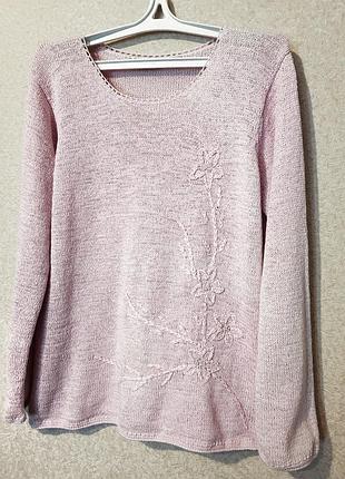 Вязаный женский свитер Bonmarche размер евро л розовая пудра 60 пэ, 40 хлопок пог 54 тянется до 64 см длина 63 см рукав 60 см