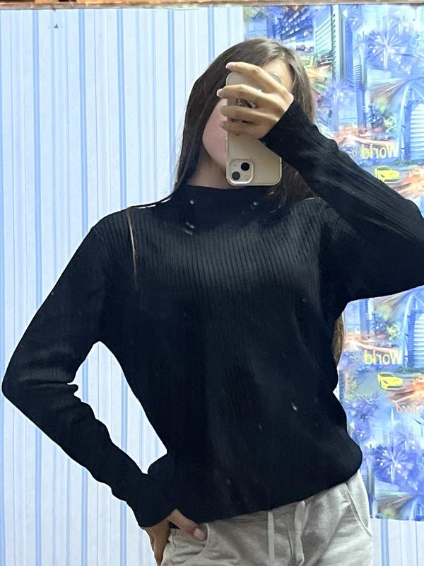 Чорна кофта L, з коротким горлом, відмінна якість трикотажу, стан ідеальний!