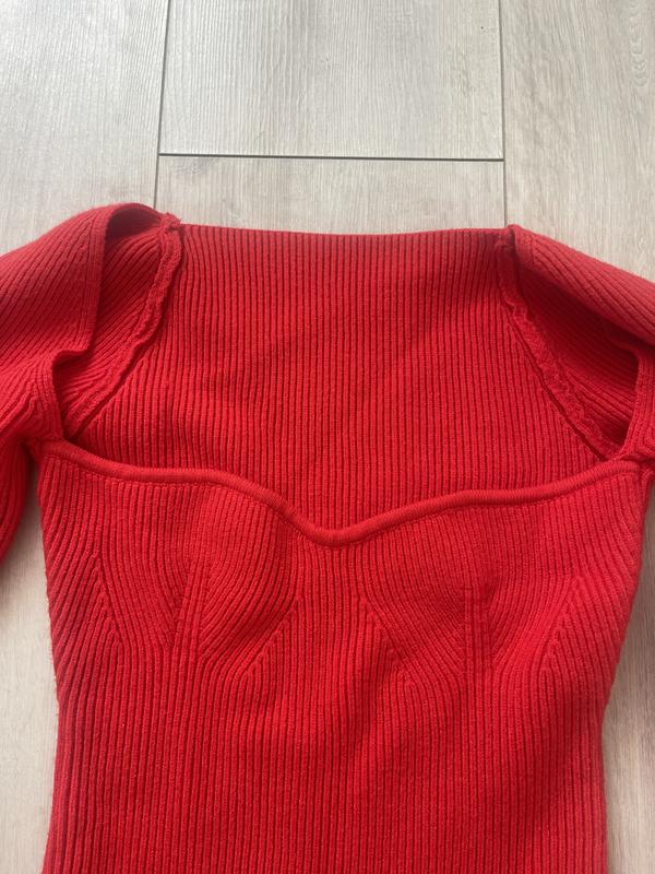Тепла кофта яскраво червоного кольору. Рукав до низу трохи розширюється.
