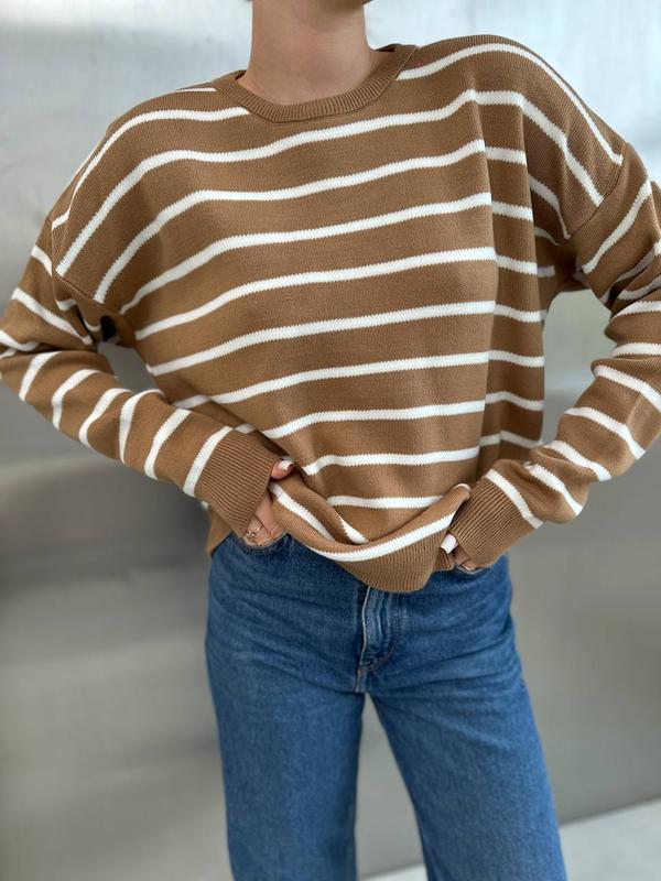 Женский свитер джемпер в полоску оверсайз Жіночий светр джемпер у смужку оверсайз фото реал 🏷️ Ціна - 849 грн ⠀ ▫️Виробник Туреччина ▫️Кольори: білий в чорну смужку, білий в зелену, беж, лаванда, малина, червоний, синій, меланж, чорний ▫️Склад: вовна 70% акрил 30% ▫️Розміри: 42-48 універсал ⠀ Осінній смугастик. Улюблені светри цього сезону в різноманітних кольорах. Приємна до тіла тканина, яка добре тягнеться. ⠀ Заміри: ОГ 106-130 см Довжина 62 см Довжина рукава 50 см ⠀ Модель 3090 💙 Підписуйтесь на мою сторінку 💛 💛 Кожен день на Вас чекають новинки 💙 💙 Одягу, взуття та аксесуарів 💛