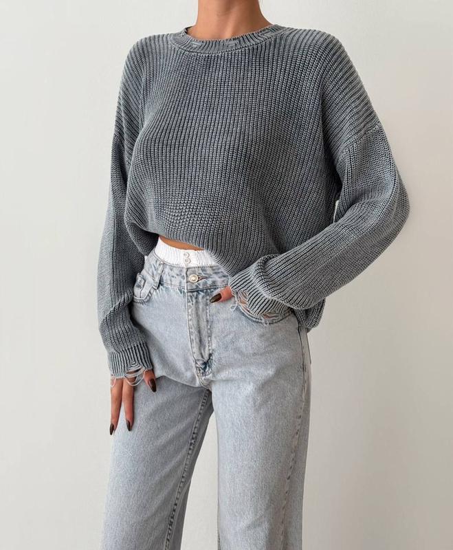 Трендовий светр з рванкою ❤️ 7786 🦒 • виробництво Туреччина🇹🇷 • машинна в’язка • oversized Ціна 1690