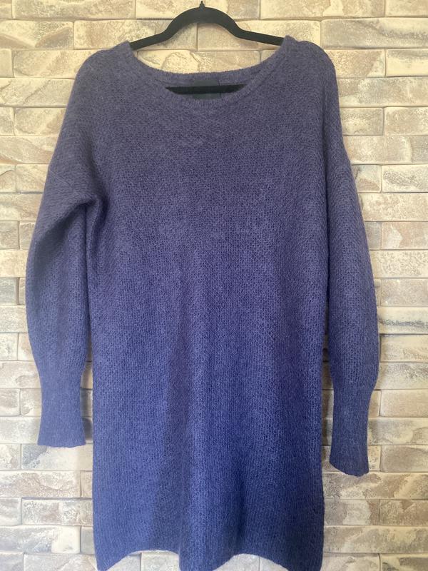 Теплесенький подовжений светр 30% мохер 30 % шерсть 40% поліамід Пог -50-60 По низ 55-65 Довжина —85 Рукав 75 від горловини Стан дуже хороший